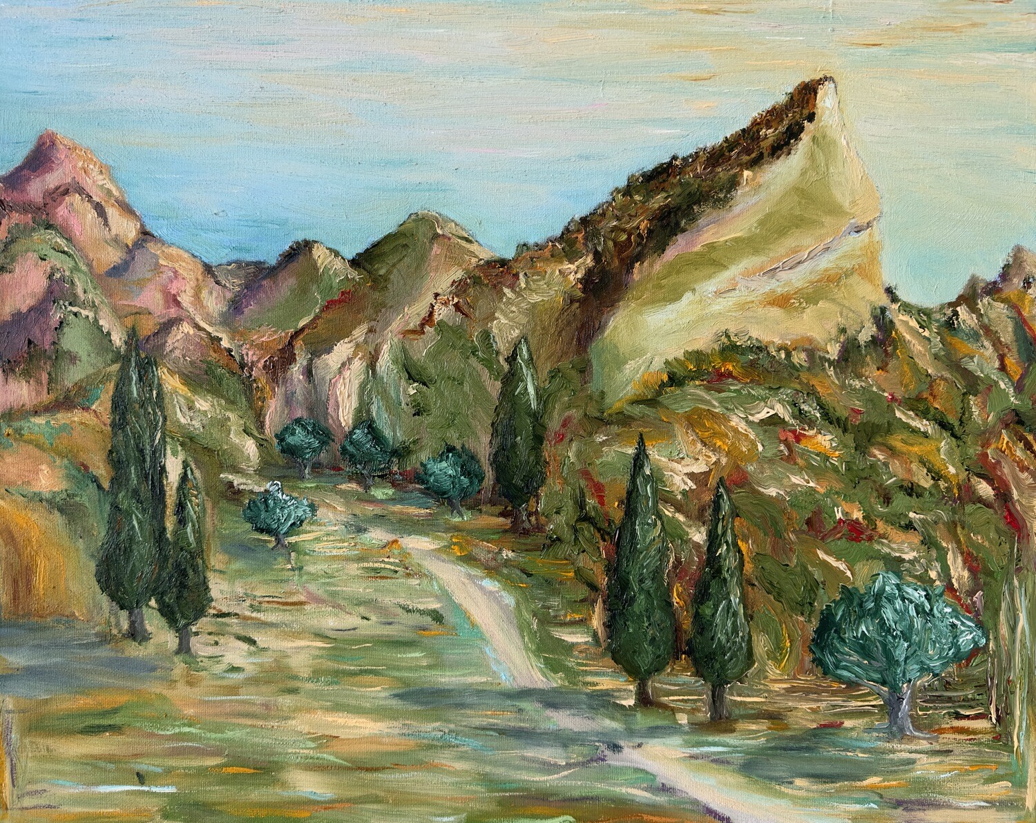 A breathtaking portrayal of the Georgian mountains, this painting captures their grandeur and serenity. With expressive brushwork and a palette of earthy tones, the artist conveys the natural beauty and ruggedness of the landscape. The interplay of light and shadow across the peaks creates a sense of depth and movement, evoking the ever-changing atmosphere of the mountains. The composition balances realism with an emotive touch, inviting the viewer to feel the tranquility, strength, and timeless presence of these majestic landscapes.